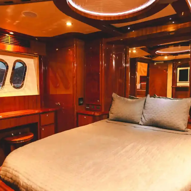 El Yate McKinna 70ft cuenta con 3 camarotes y 3 baños, ofreciendo privacidad y comodidad para hasta 10 pasajeros. La elegante mesa de comedor es perfecta para disfrutar de comidas memorables con vistas al mar.