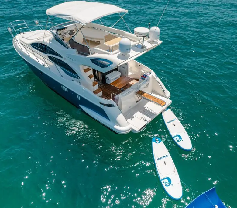 Cuando el diseño importa tanto como el rendimiento, la renta de yate Azimut 43 en Los Cabos es la elección natural. Esta embarcación italiana es sinónimo de elegancia en movimiento: líneas depuradas, materiales de alta gama y una distribución interior que hace sentir a sus 10 pasajeros como en un hotel flotante de cinco estrellas. Además, navegar por las aguas de Los Cabos a bordo de un yate Azimut es una experiencia que muy pocos destinos del mundo pueden ofrecer.